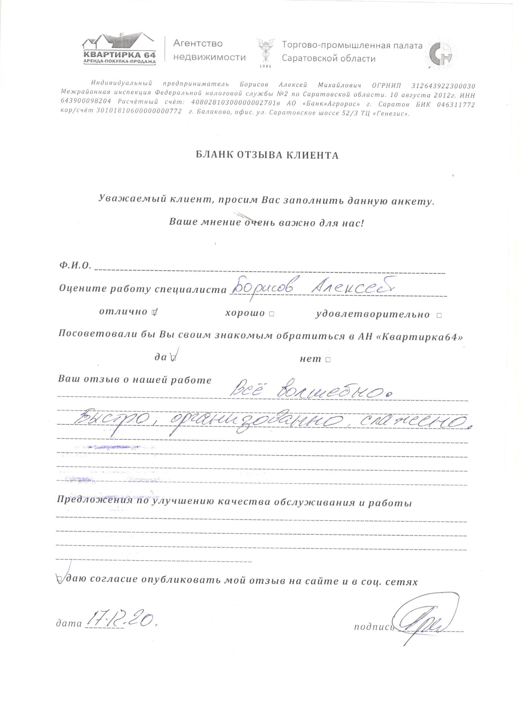Клиент не захотел написать имени